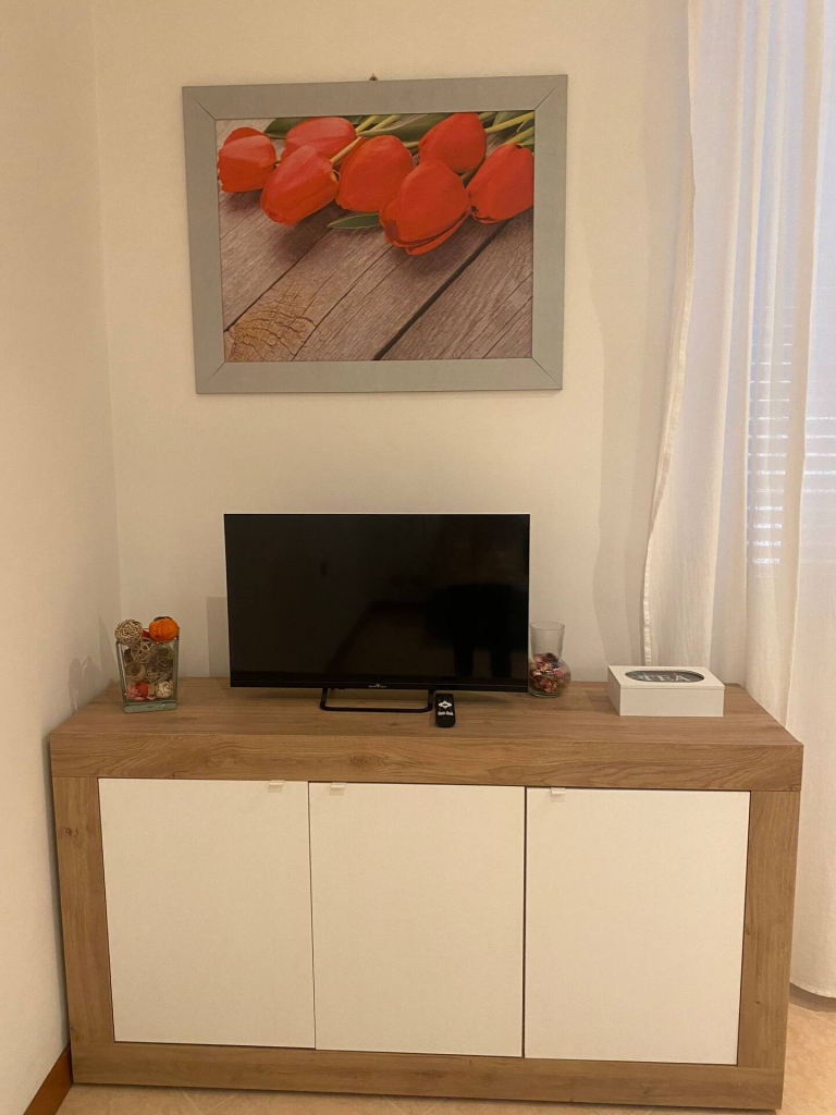 The apartment is composed as follows: entrance with built-in wardrobe, living room with fully equipped open kitchen with microwave oven, coffee machine, kettle, toaster, herbal tea maker, induction hob and flat screen TV in both bedrooms.
